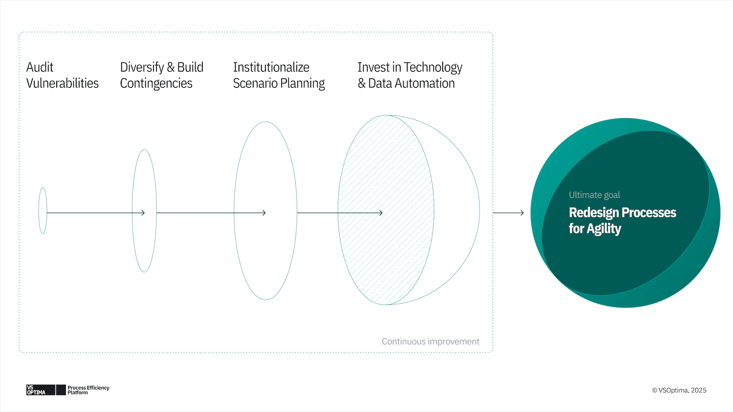 Redesign Processes for Agility: Streamline governance to empower rapid decisions. Update SOPs and incentivize resilience alongside cost savings. Foster deeper collaboration with suppliers to ensure readiness when the next disruption hits.