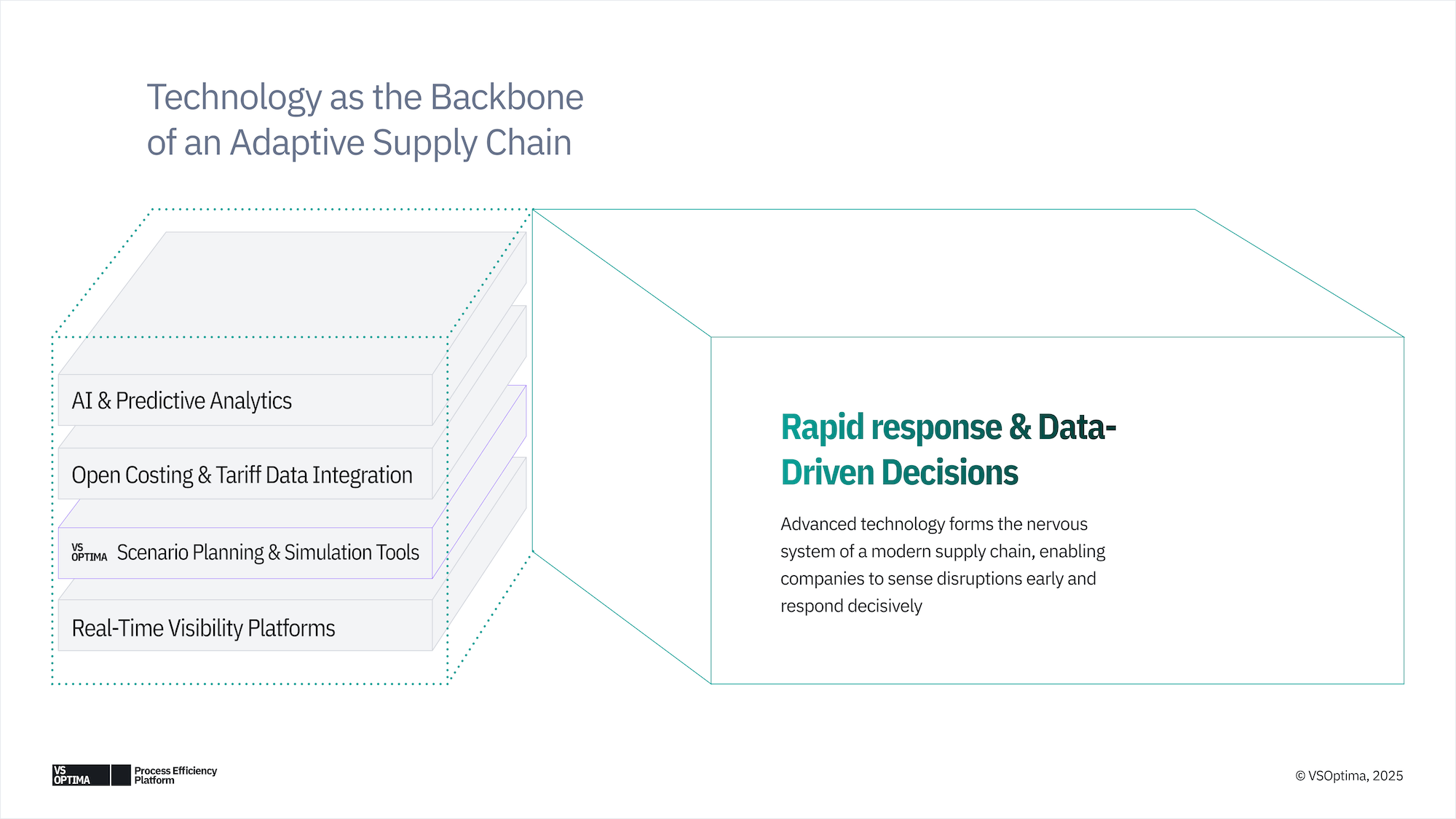 Traditional supply chain strategies built on static analysis are no longer sustainable. Annual reviews and fixed cost assumptions fail in a world where tariffs and trade conditions shift within weeks. A supplier deemed low-cost today could become a liability tomorrow.